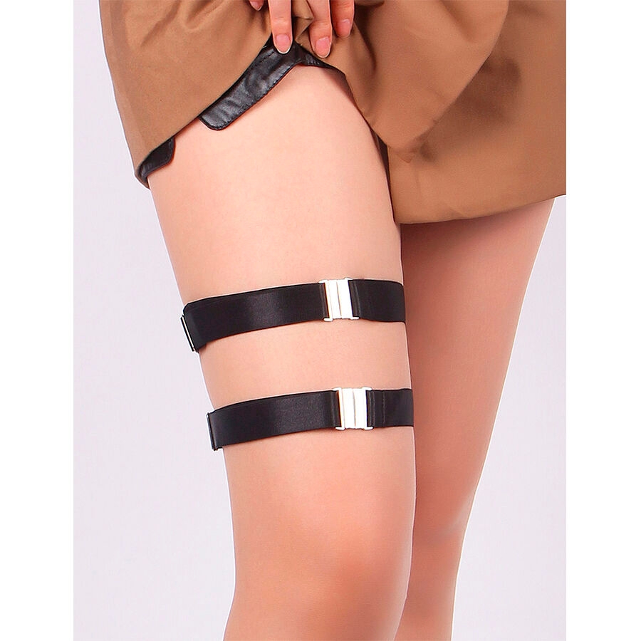 Verleihen Sie Ihrem Look einen Hauch von Kühnheit und Stil mit den schwarzen, verstellbaren Beinringen mit elastischer Schnalle von SUBBLIME , dem perfekten Accessoire für alle, die ihren Look mit einem provokanten und raffinierten Detail aufwerten möchten.