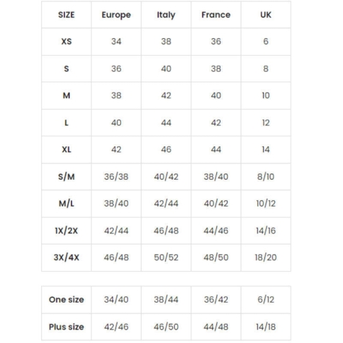 » Size chart