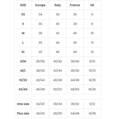» Size chart